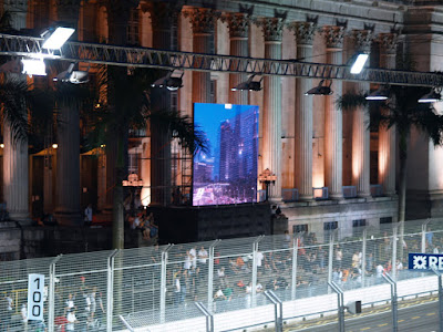 Today was my first opportunity to see the full extent of the transformation of Singapore’s streets into a F1 race track. I must say that they have done a great job, particularly with the track lighting which is bright and yet not too harsh. It is particularly impressive seeing all the historic buildings in close proximity to the track.